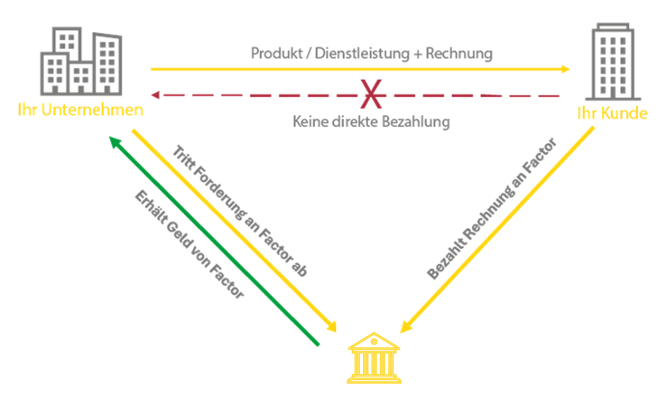 Ihr Unternehmen liefert wie gehabt Waren oder erbringt Dienstleistungen direkt an Ihren Kunden. - Verkauf der Forderung